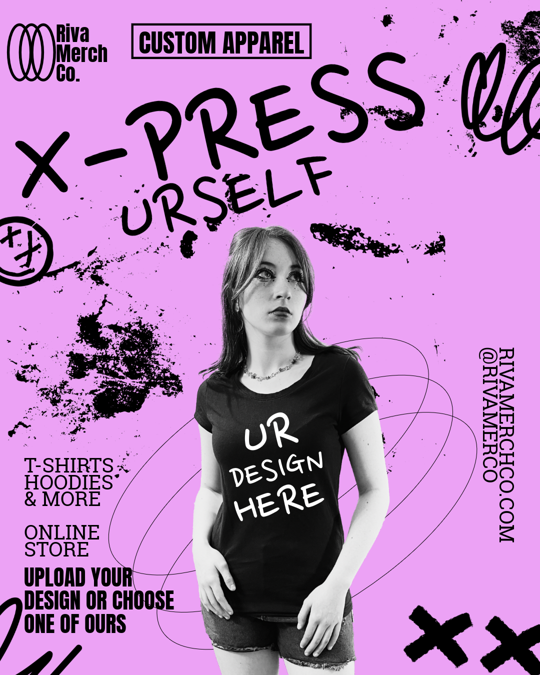 Be ready to email us your design, the brand #, Color, & Sizes of the merch and/or apparel you want your design on; and then we'll respond with an example of your order. **You can email us now at rivamerchco@gmail.com if you're ready for a mockup. Digital image supported file types: JPG, PNG, SVG. Max. File size: 10MB